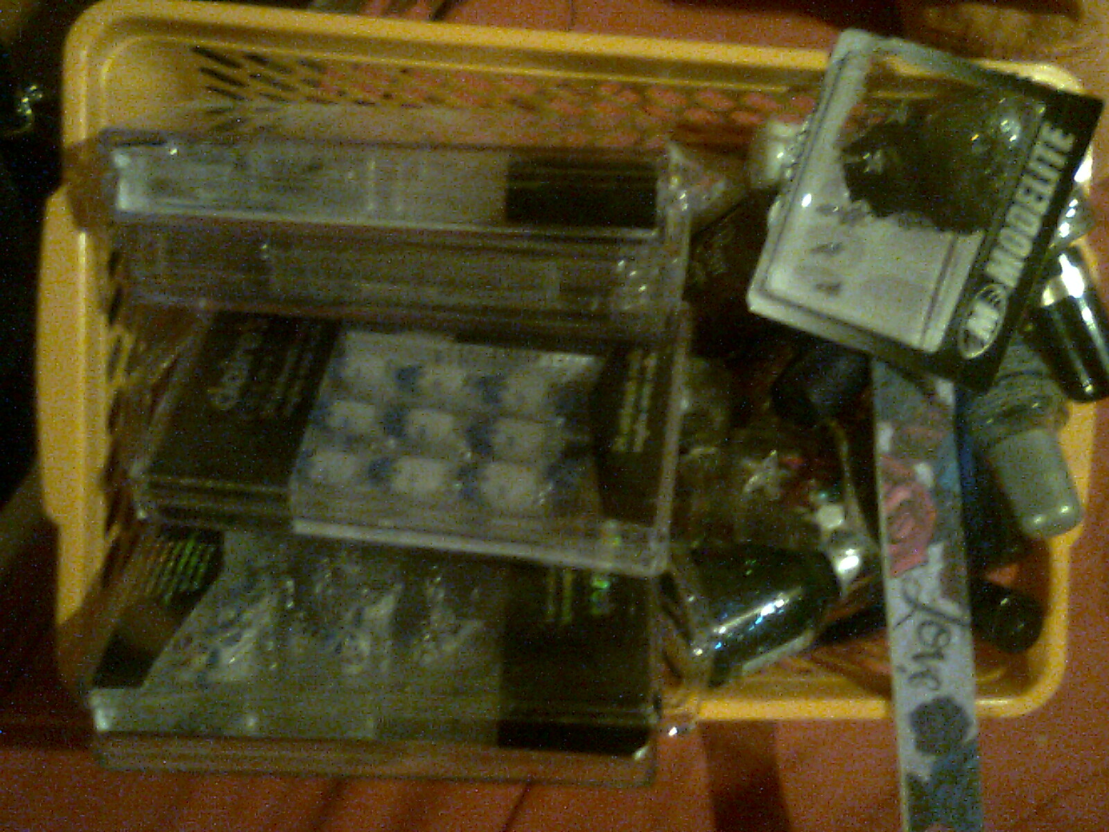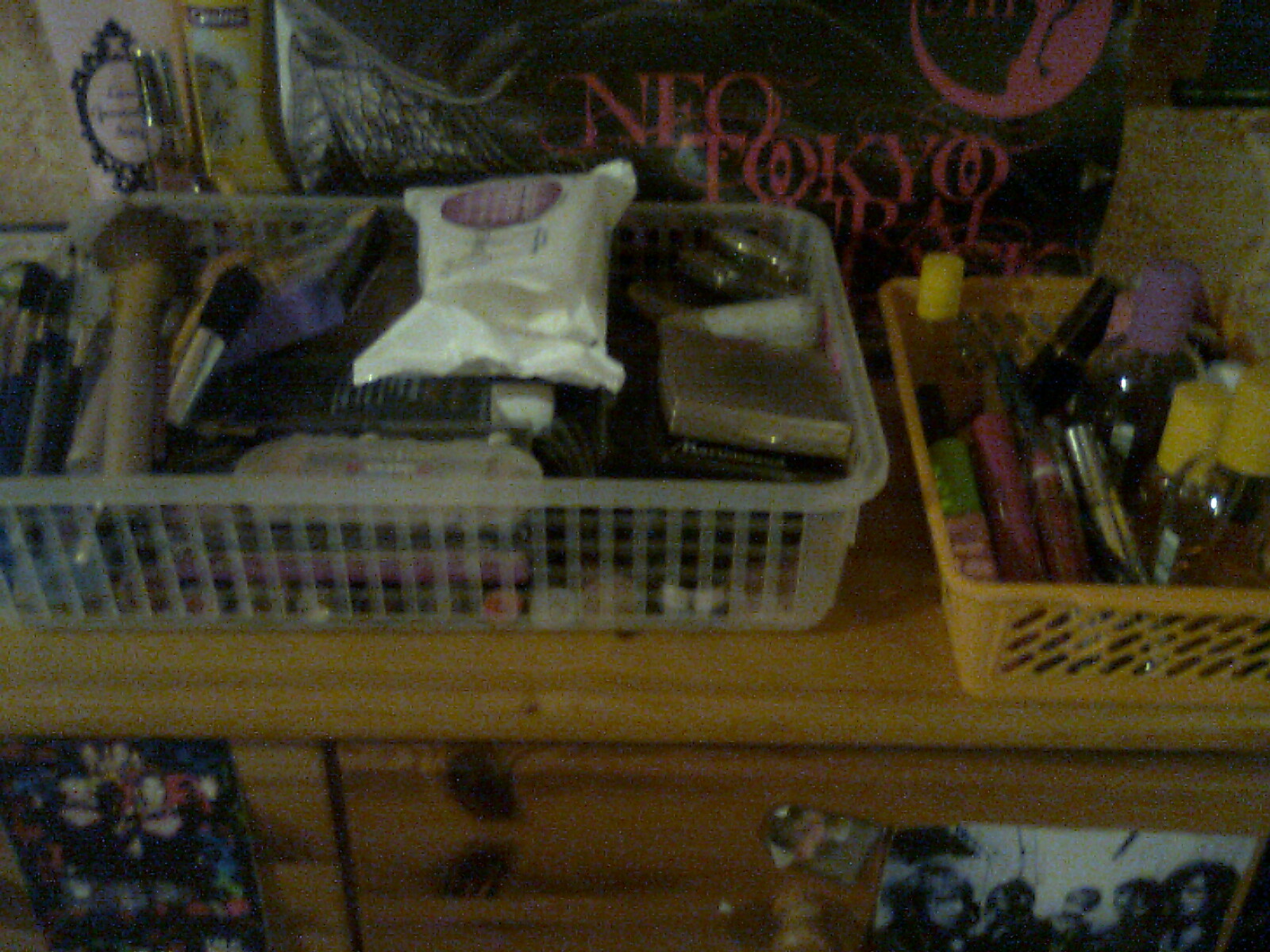 Alors là c'est les produits de beauté et maquillage que j'utilise le plus couramment: (le reste est soit dans des sacs, soit parti à la poubelle)