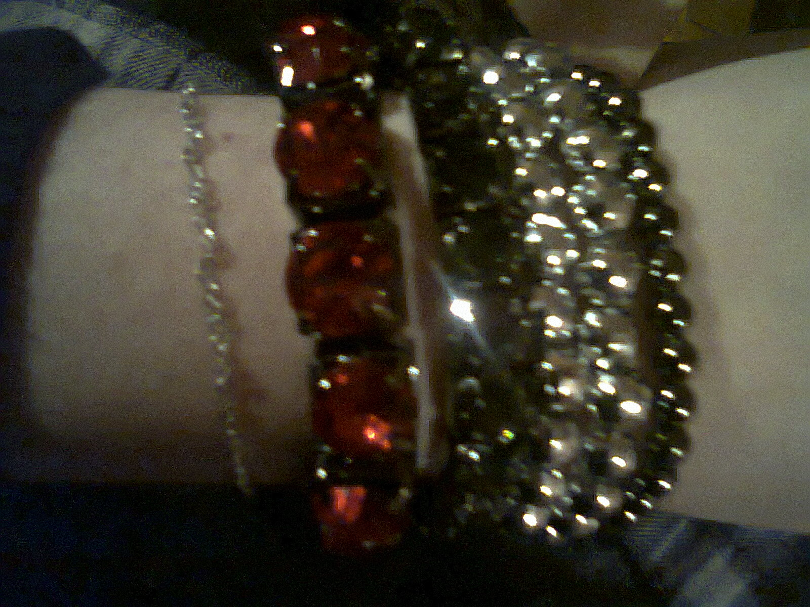 Des bracelets bien kitch (mais je sais pas pourquoi j'aimais bien le rouge... en tout cas je pense que je les mettrais pas tous ensemble)