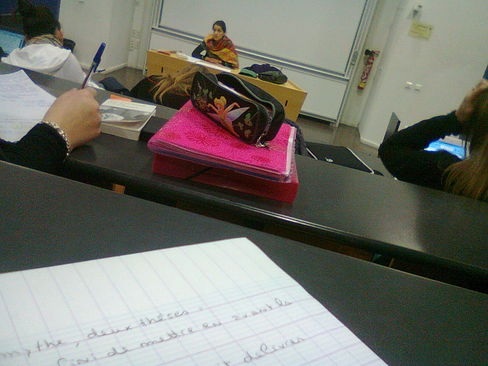 En cours (ma prof est affreuse, c'est celle que j'aime le moins *CM de Littérature Comparée*